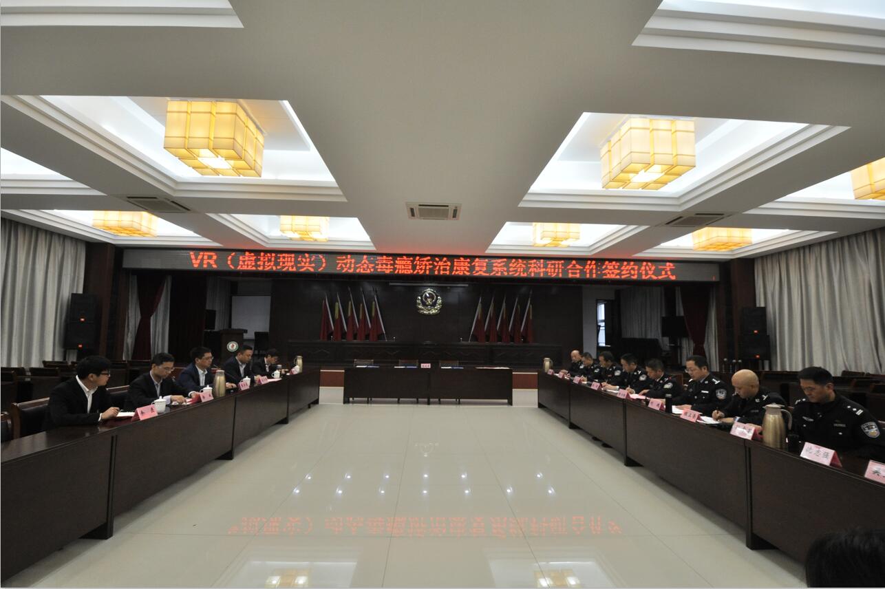 2018年 10月,习近平总书记在向世界VR产业大会致贺信中指出“虚拟现实技术………拓展了人类感知能力,改变了产品形态和服务模式。”此次合作双方围绕科学戒毒目标,共同就VR(虚拟现实)技术运用于戒毒人员毒瘾康复而展开深层次合作,为搭建科技戒毒创新支撑平台,提升司法行政自主科技创新能力,从而形成相应科技创新产出及成果转化机制进行了实践探索。